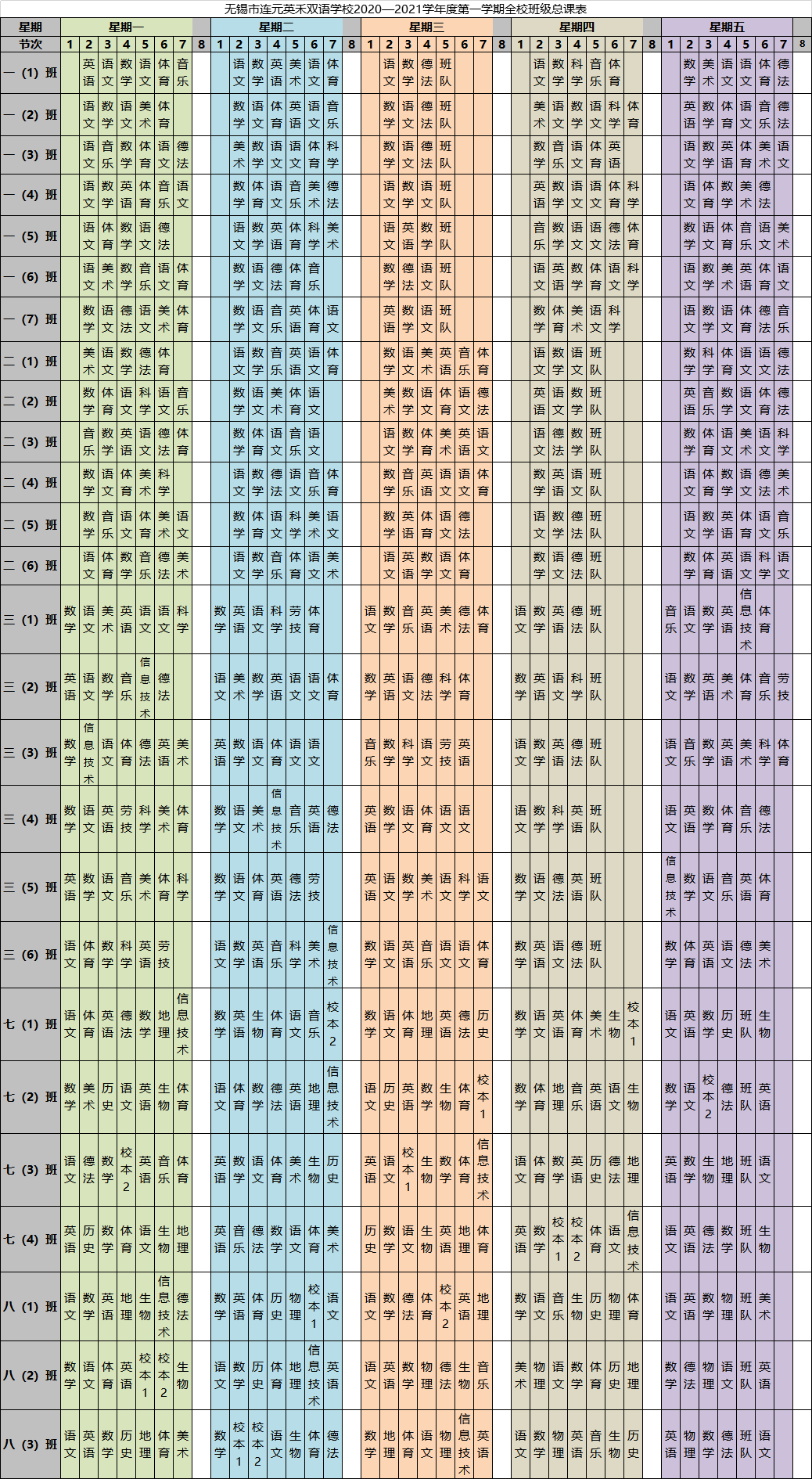 2020-2021學(xué)年第一學(xué)期全校全年級(jí)總課表
